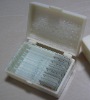 slides and cover C01Volvox W.M.C02Leaf of Jasminum T.S.C03Seed of zeamys L.S.C04Mouth of Grassshoper w.m.C05Hydra with bud W.M.C06Bacteria 3types smear.(staphylococcus,pseudonmonas and spirillum)C07Human blood smearC08Earthworm C.S.C09Ascarid eggs w.m.C10Microzyme smearC11Spinal cord c.s.C12Epithelium cells of cavitas oris of human mouth W.M.C13Chromosome of Normal man W.M.C14Meiosis of Locust spermary w.m.C15Stem of Pumpkin l.s.
